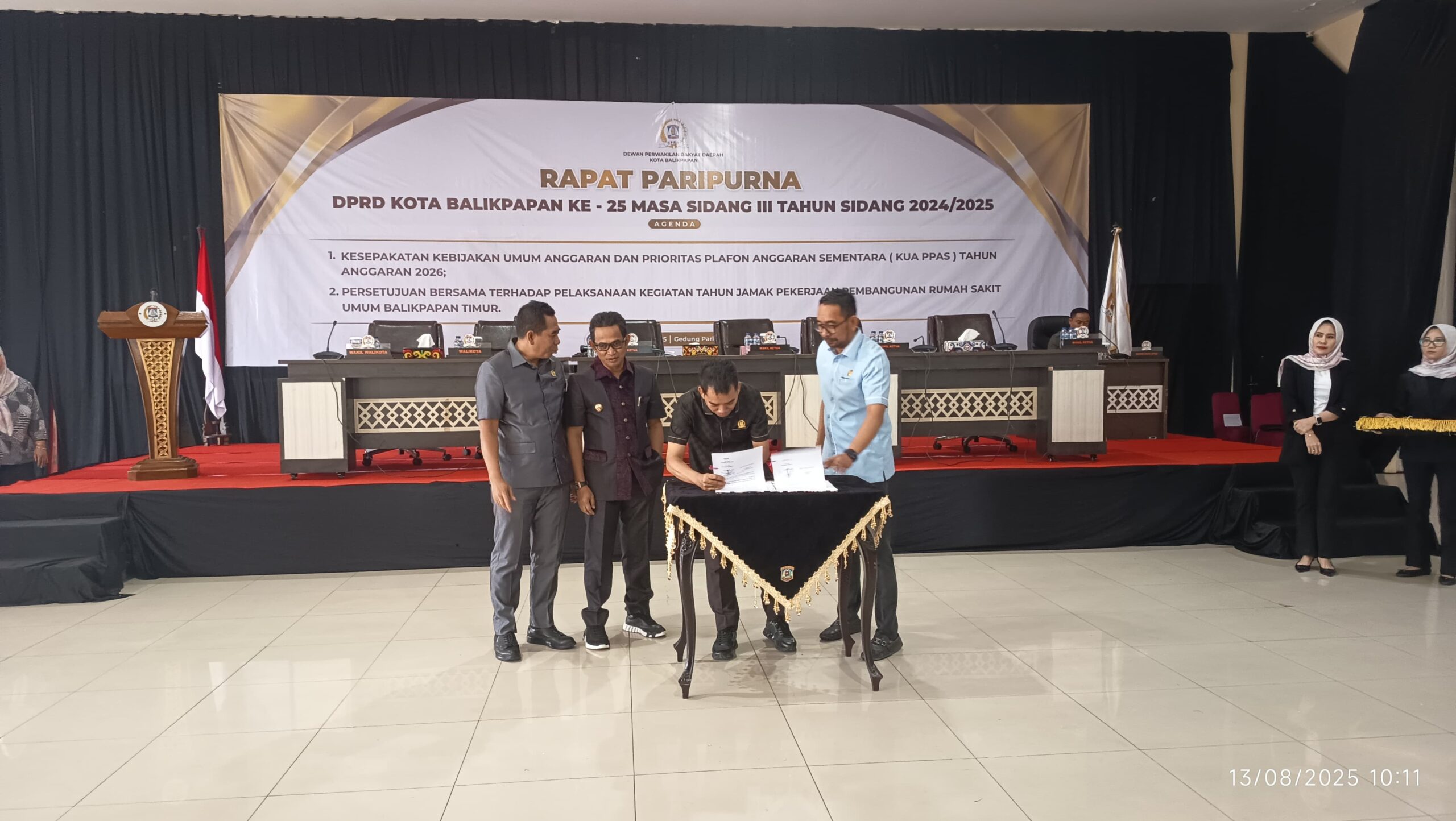 Lintaskaltim.com, BALIKPAPAN – DPRD Kota Balikpapan bersama Pemerintah Kota Balikpapan resmi menyepakati Kebijakan Umum Anggaran (KUA) dan Prioritas Plafon Anggaran Sementara (PPAS) Tahun Anggaran 2026, sekaligus penandatanganan kontrak tahun jamak (multi years) pembangunan Rumah Sakit Umum (RSU) Balikpapan Timur. Kesepakatan ini diambil dalam Rapat Paripurna yang digelar pada Rabu (13/8/2025).