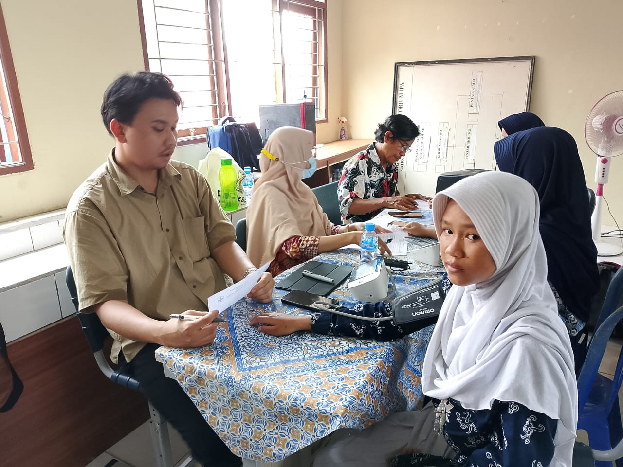 Para tenaga kesehatan, mulai dari dokter, analis laboratorium, perawat, tenaga promosi kesehatan, tenaga kesehatan gigi, hingga bidan yang menangani vaksinasi bekerja saling melengkapi. Mereka tak hanya melakukan pemeriksaan, tetapi juga memberikan edukasi ringan kepada para siswa yang terlihat antusias mengikuti setiap tahap.